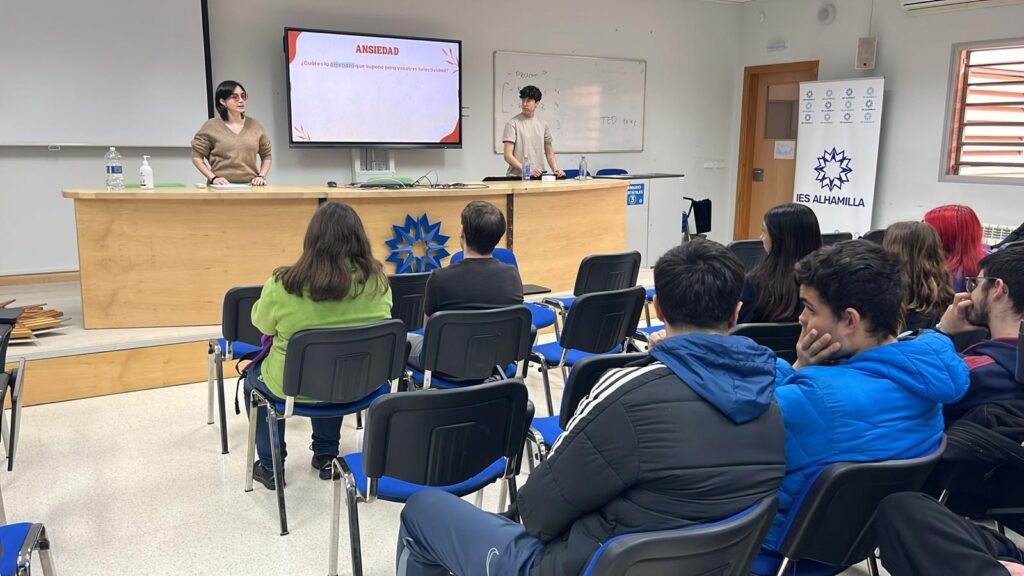 El alumnado de 2º de Bachillerato del IES Alhamilla ha participado recientemente en una sesión formativa centrada en la gestión de la ansiedad, una temática especialmente relevante en una etapa académica marcada por la toma de decisiones y la preparación de pruebas de acceso a la universidad.