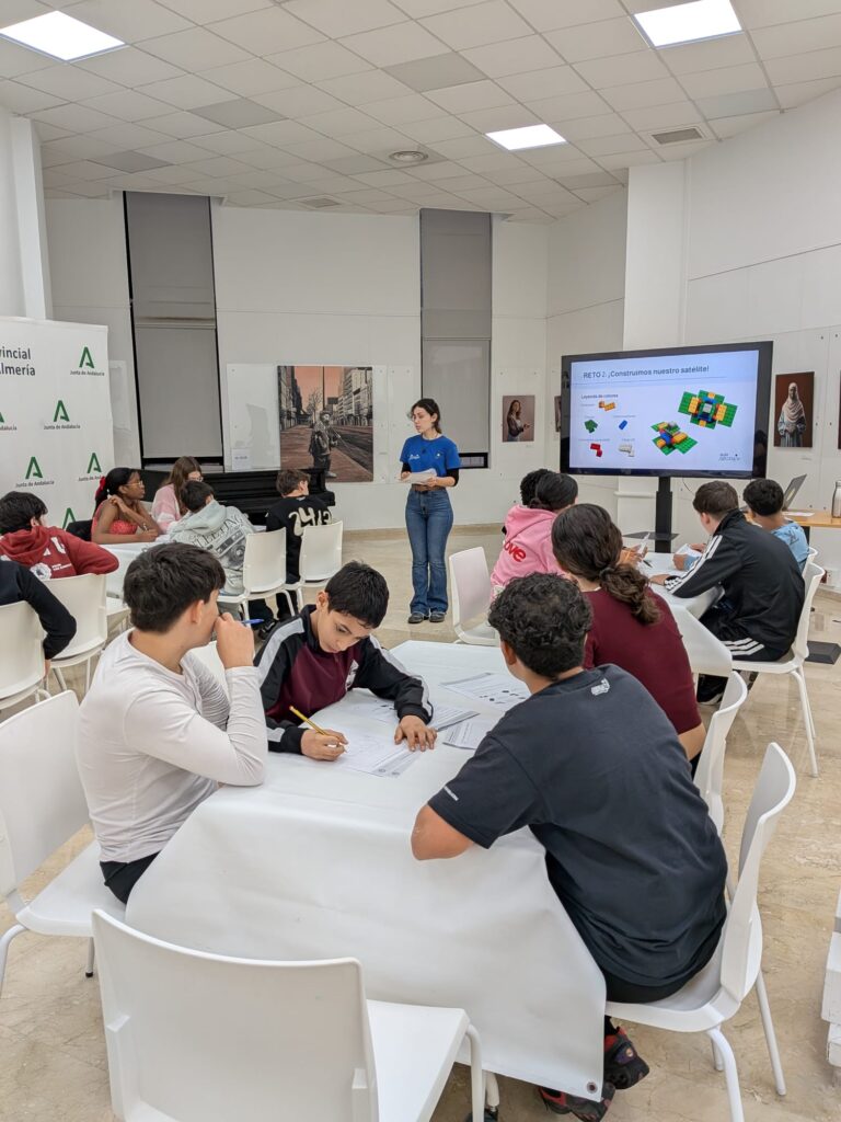 La actividad incluyó una dinámica práctica en la que los grupos diseñaron sus propios nanosatélites, analizando los elementos necesarios para su construcción, elaborando prototipos y presentando sus propuestas al resto de participantes. Esta experiencia permitió al alumnado comprender de forma directa y motivadora el impacto de la tecnología espacial en la protección del medio ambiente.
